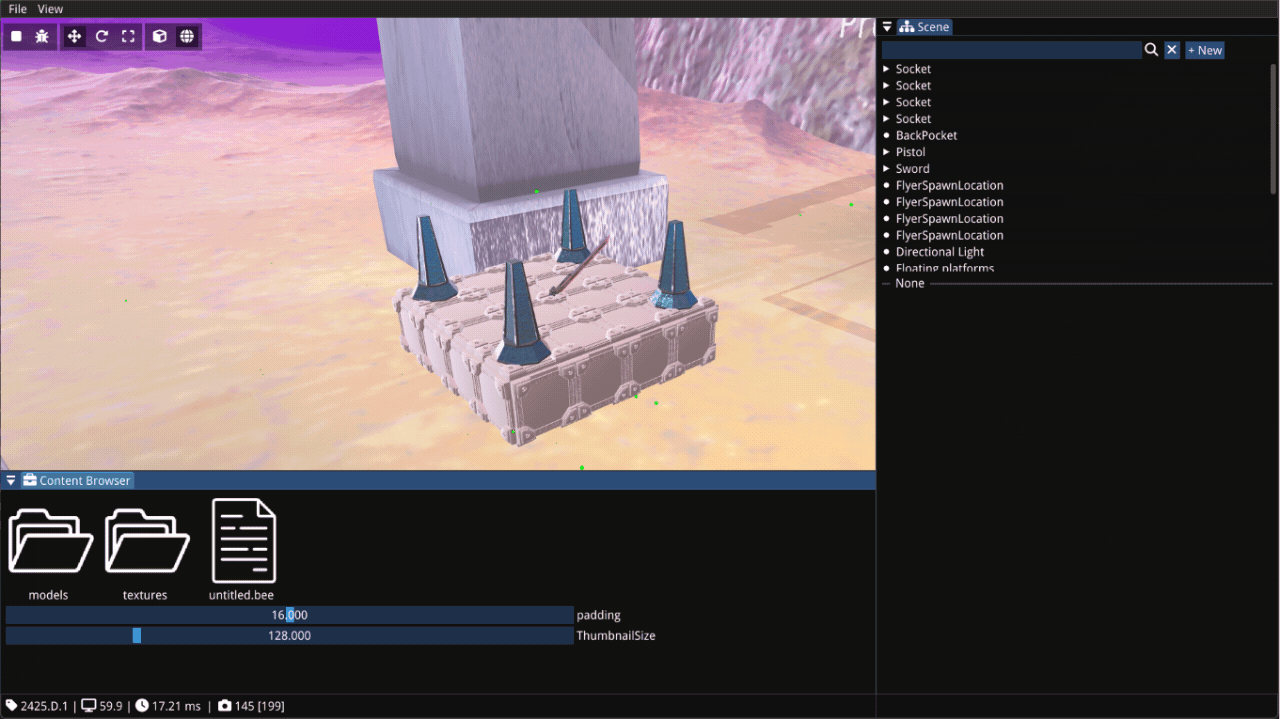 I extended our ImGui-based in-engine editor with dockable panels, scene serialization and instantiating from the asset browser.